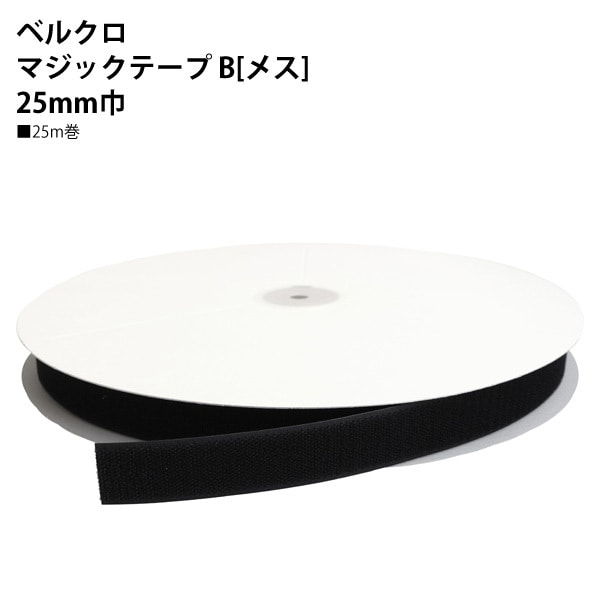 NBK ベルクロ マジックテープ B メス 25mm巾×25m巻 黒 F11-BER25-25B-2