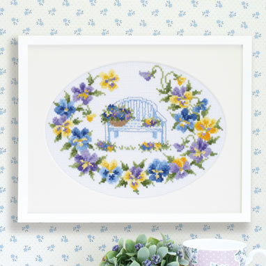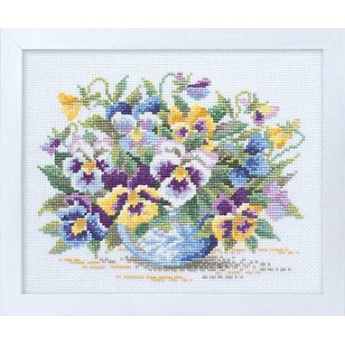 Olympus オリムパス クロスステッチ 刺しゅうキット フラワーガーデン やさしい花刺しゅう額 ワイルドパンジー 白 7285