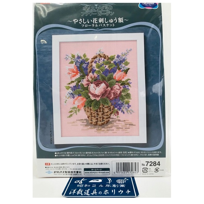 Olympus オリムパス クロスステッチ 刺しゅうキット フラワーガーデン やさしい花刺しゅう額 フローラルバスケット ピンク 7284