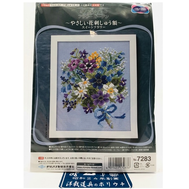 Olympus オリムパス クロスステッチ 刺しゅうキット フラワーガーデン やさしい花刺しゅう額 スイートフラワー ブルー 7283