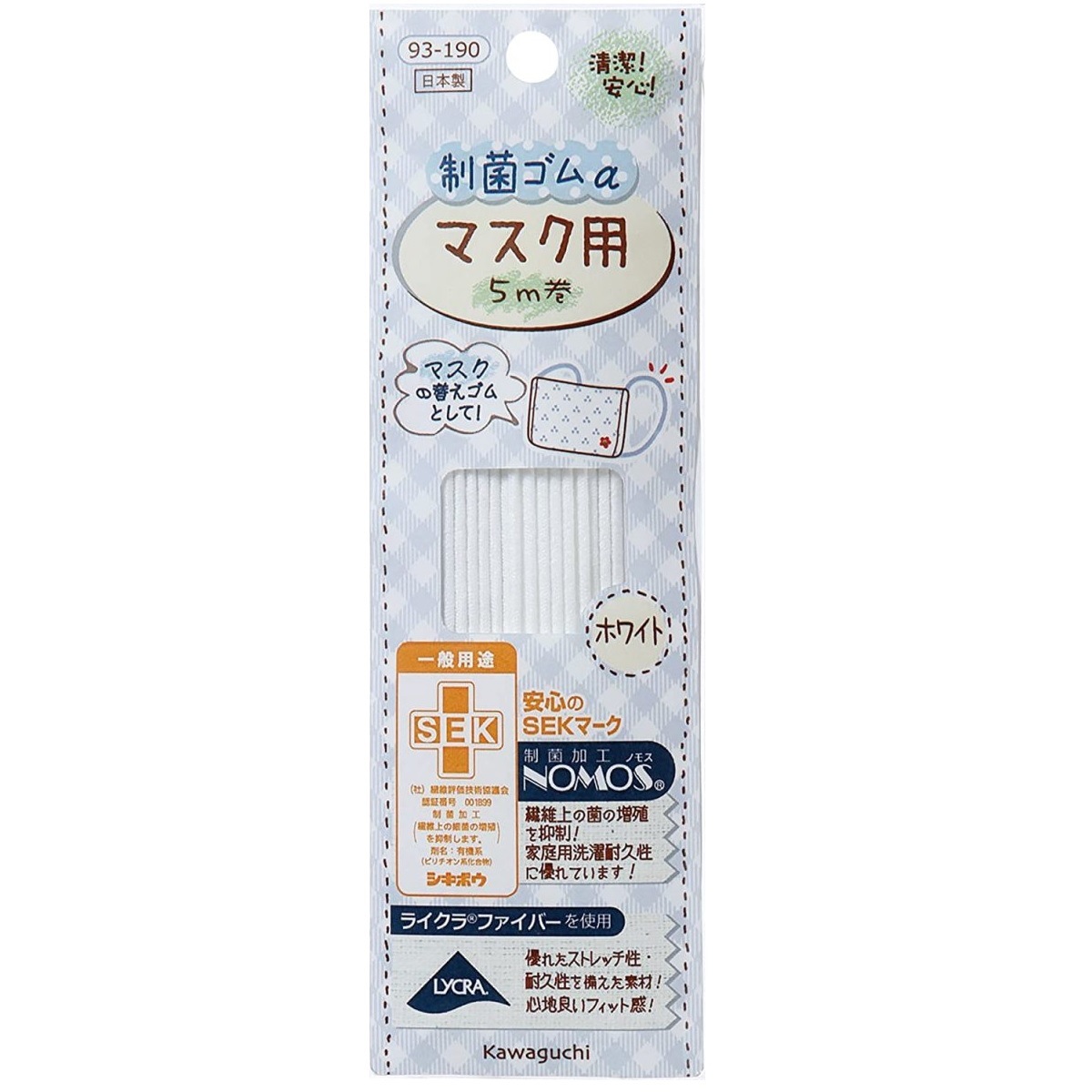 KAWAGUCHI カワグチ 河口 抗菌 防臭 織りゴム 幅25mm 長さ1.5m巻 白 93-149