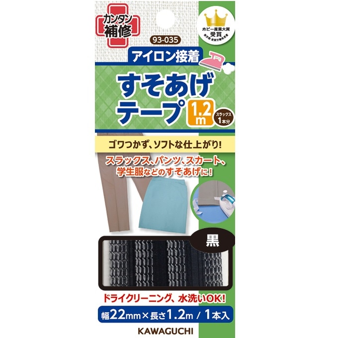 KAWAGUCHI 河口 すそあげテープ アイロン接着 幅22mm×長さ1.2m 黒 93-035