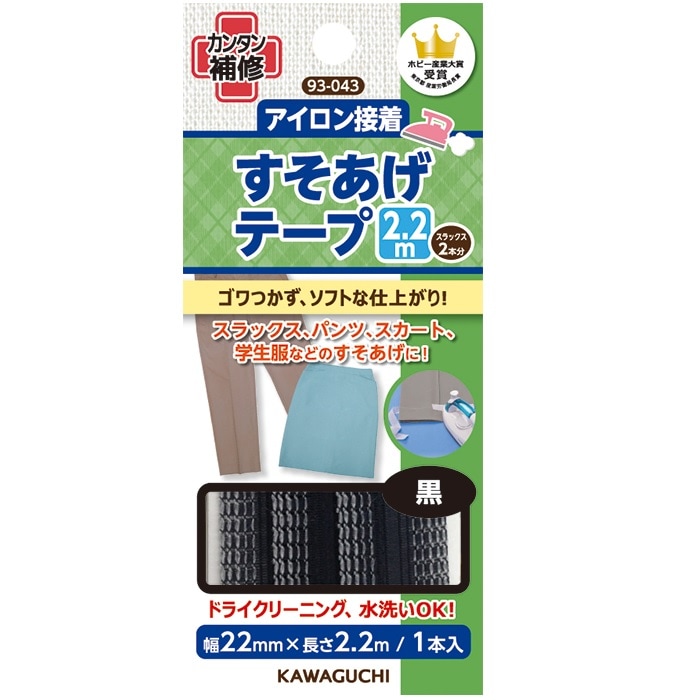 KAWAGUCHI 河口 すそあげテープ アイロン接着 幅22mm×長さ2.2m 黒 93-043