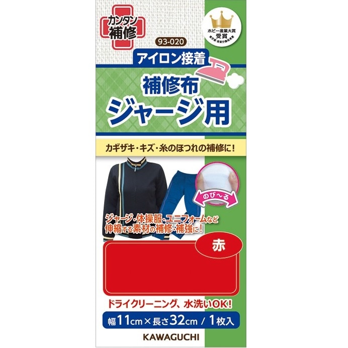 KAWAGUCHI 河口 ジャージ用 補修布 アイロン接着 幅11×長さ32cm 赤 93-020