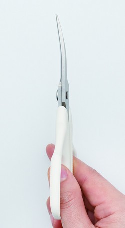 生地のカーブが切りやすい、刃がカーブしたはさみ ■ 商品説明 生地のカーブが切りやすい、刃がカーブしたはさみ。アップリケモチーフやパッチワークなどの曲線カットに使いやすい。 <刃の特長> ・全体がゆるくカーブしているので、どんな曲線でも切りやすい ・厚みのあるブレードなので耐久性がある。 <柄の特長>柄が左右対称なので、右利き、左利きどちらでも持ちやすい。 <ソリ刃との違い>従来はさみの“ソリ刃”は、基本は直線刃で先端のみカーブしている。 先端で生地を傷つけないためのソリなので、曲線を切るためのカーブはさみとは目的が違う。 サイズ・容量 <パッケージサイズ>89X205X12mm <本体サイズ>本体:全長140mm 幅65mm 規格 ■生産地:日本 ■素材・成分:刃部:ステンレス鋼 柄部:ABS樹脂 サック:オレフィン系樹脂 |