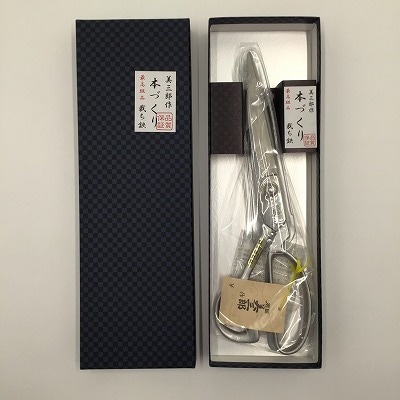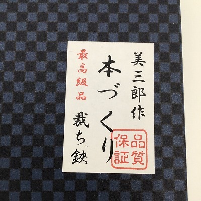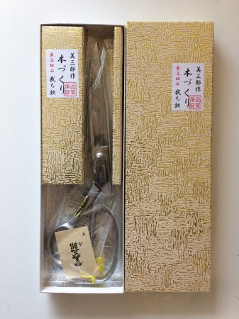 本格的な布切り ■ 商品説明 サイズ:全長約250mm 刃長約105mm 重量:約230g (手作り品の為サイズ、重量は目安です。) 本格的な布切り、美三郎本づくり。持つ方に喜びを与える逸品です。ぜひご覧下さい。 もの造りを極めるあなたに送る極上の鋏。 それはものにこだわりを持つすべての人に知ってもらいたい・・・。 本格的なプロ用として 今までのものに満足できなかった人、ご自分の趣味を極めたい人 道具にこだわる人にお届けする極上のハサミ。 この価値は使った人には分かるものと思います。 一度使うと病み付きになるハサミです。是非お試し下さい。 品質表示Di-red.gifDi-red.gifDi-red.gifDi-red.gifDi-red.gif 刃部:高級冷間ダイス鋼 SLD(SKD11) 柄部:白心可鍛鋳鉄(シルバーメタリック塗装) 刃は安来鋼のSLDを使用し、最高の切れ味と耐久性、そしてサビにくさを実現させました。お手入れも簡単です。 ●最高品質の素材を使用し、熟練した職人が精魂込めた手造りの逸品。刃はハイカーボン合金鋼、SLD(JISではSKD11)を使用した複合材を使用。 ●ステンレスのものは切れないといいますが、このSLDを使用した”美三郎本づくり”は、ステンレスでありながら鋼にも負けない素晴らしい切味を誇ります。 ●刃はサビにくく非常に美しい鏡面仕上げ。いつまでも美しい状態を保つことができます。 ●従来品には対応が難しい化学繊維にも強い刃材として開発しました。 ●皮革、ゴム、厚い布(カーペットなど)などにも最適です。 ●刃がガリガリすることが少なく、長期にわたり変わらない切れ味を持続しますので、研ぎ直しはあまり必要ありません。※使用状況によります。 ●ハンドルは美しいメタリックグレー。しかもエアーブラシによる吹付け塗装により今までにない美しさです。 また、手にシックリとした感触で持ちやすい。 ●ネジは左右対称タイプを採用し、精度、品質、高級感を高めました。 ◎「SLD」について 日立金属安来鋼ではSLDの商標をもち、JISではSKD11と呼ばれている。一般に冷間ダイス鋼としてなじみのある精密型材に使用されている鋼材。 兵庫県小野市発、創業昭和24年(1949年)ハサミ専門メーカーです。当社と同じ創業年、たしかな高品質日本製で安心 |