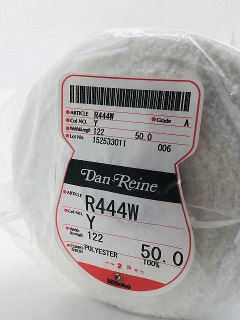 難接着素材用芯地 ■ 商品説明 業務用 日東紡 ダンレーヌ R444 接着芯 122cm巾×50m 1反 (黒(No30)・生成(Y色)) 難接着素材用芯地 ポリエステル、レーヨンベルベット、加工布等の素材に十分な接着力が得られます。 又、表面平滑性にも優れ、基布アタリが完全に防止されます。 (接着樹脂、ポリアミドドットタイプ) ニット地や刺繍・ちりめん、BAGにもOK。 硬さもほどほどにあり、しなやかな感じもあります。 伸縮性・ストレッチ性のある、使いやすい万能接着芯です。 素材:ポリエステル100% 色:黒・生成(KW白(真っ白)は製造がされていません) |