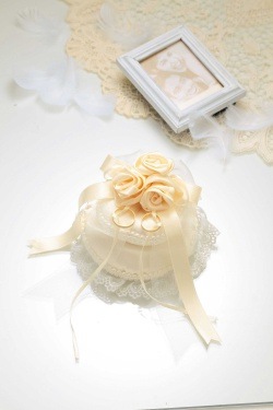巻きバラとリボンをあしらったホワイトウエディングにふさわしいエレガントなリングピロー ■ 商品説明 巻きバラとリボンをあしらったホワイトウエディングにふさわしいエレガントなリングピロー。色目も今大人気のシャンパンゴールドで上品さを表現しています。綿つきのためすぐに作り始めていただけます。特別な一日を手作りのリングピローと共に…… |