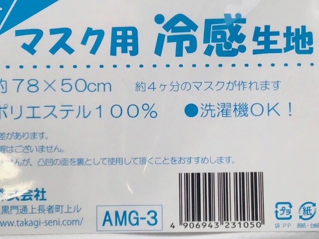 接触冷感生地の切り売りです! ■ 商品説明 接触冷感生地の切り売りです! 【接触冷感】だけでなく、【UVカット(UPF50+)】・【抗菌】加工が施された生地ですので、暑い夏にも最適!また、夏用マスクにも最適です。 ※冷感の感じ方には個人差があります。 ※冷感機能に差はございませんが、凹凸の面を裏として使用していただく事をおすすめします。 【ご購入の注意点】 こちらの商品は生地の切り売りではありません。50cmのカットクロスが袋に入っています。 |