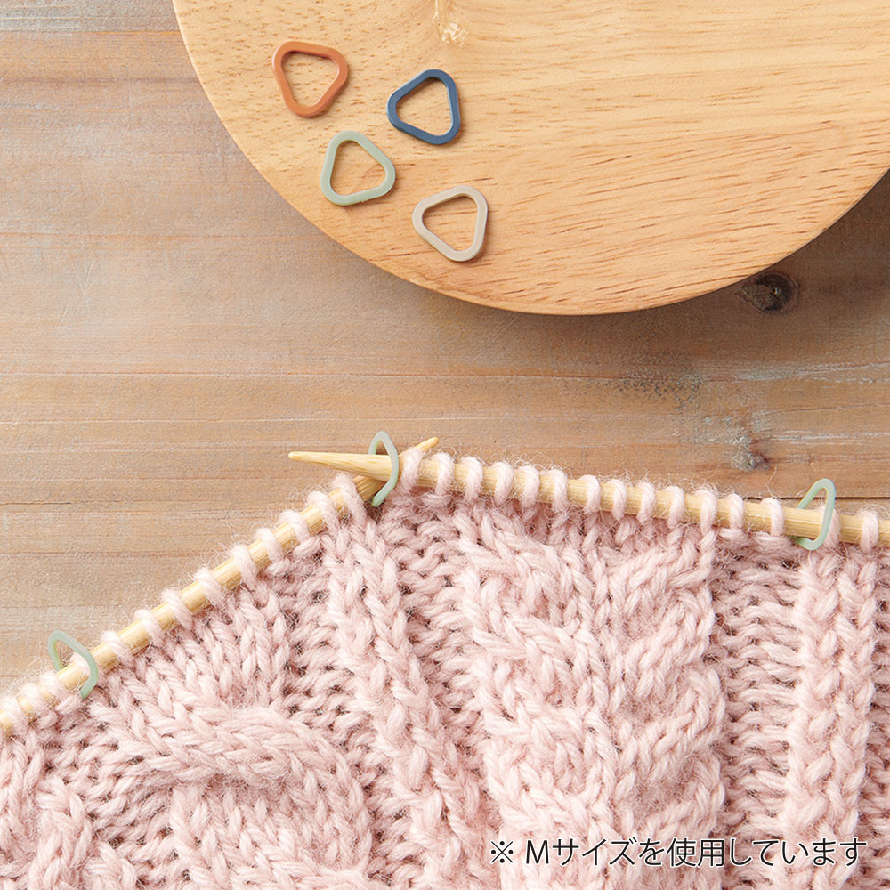 棒針編みの目印に!三角でさらに使いやすく。 ■ 商品説明 編み始めや模様が変わる時、増し目や減らし目をする場所の目印になり、編みまちがいを防ぐアイテムです。 この商品のおすすめポイントはこちら。 ・柔らかい素材を使用しているので手への当たりがやさしい ・三角形なので針先を入れやすく編んでいる最中でも邪魔になりにくい ・平らなところに置いても拾いやすいウェーブ形状 ・編み地に通した時にウェーブが編み目に沿い目を広げにくい 用途 ・模様の区切りに ・編み始めの目印に ・減目や増し目の目印に 〇適応号数:5~10号(3.6mm~5.1mm) 〇4色セット(ダークグリーン、ラズベリー、ラベンダー、ライトピンク)各6個入り 内容物:24個入(4色×6個) 材質:本体:エラストマー、ケース:オレフィン系樹脂 原産国:日本 パッケージサイズ:65×115×8mm |