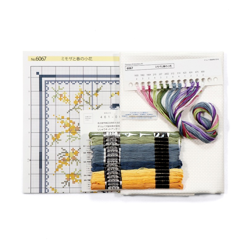 Olympus オリムパス 刺しゅうキット クロスステッチ オノエ・メグミ テーブルセンター 1210 ミモザ と 春 の 小花