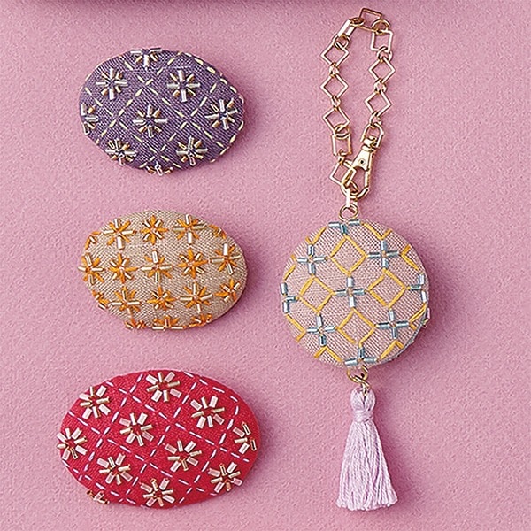 等間隔にしるし付けができるビーズ刺子専用プレート ■ 商品説明 テンプレートで「ビーズ刺し子」のしるしが簡単に付けられます。 ビーズ刺し子のステッチの前に正確な印を付けるためのプレートです。5mm幅は一分竹ビーズ(3mm)、8mm幅は二分竹ビーズ(6mm)のしるし付けに使うことが出来ます。ドットが正確に付けられるので、作品もきれいに仕上がります。ブローチやポーチ、オーナメント作りはもちろん、洋服やバッグ、小物など既製品のアレンジも楽しめます。 ○9種類のステッチ説明入り 平山道(ひらやまみち)、矢羽根(やばね)、段つなぎ、柿の花、角十つなぎ(かくじゅう)、十の木(じゅうのき)、米刺し、蜀紅(しょっこう)、銭形刺し(ぜにがた) ○用意するもの ・ビーズお好みの生地(キャンバス地など) ・ビーズ 5mmの間隔を使う時/一分竹ビーズ(3mm) 8mmの間隔を使う時/二分竹ビーズ(6mm) ・水性チャコペン ・25番刺しゅう糸 または 刺し子糸〈細〉 ・クロバービーズ刺し子針〈6本入〉(57-785) ・スレダー(15-001) ・消しペン(水性チャコペン用)(24-425) 内容物:テンプレート、使い方説明書 材質:PET 原産国:日本 パッケージサイズ:170×220×3mm 商品番号:57-784 |